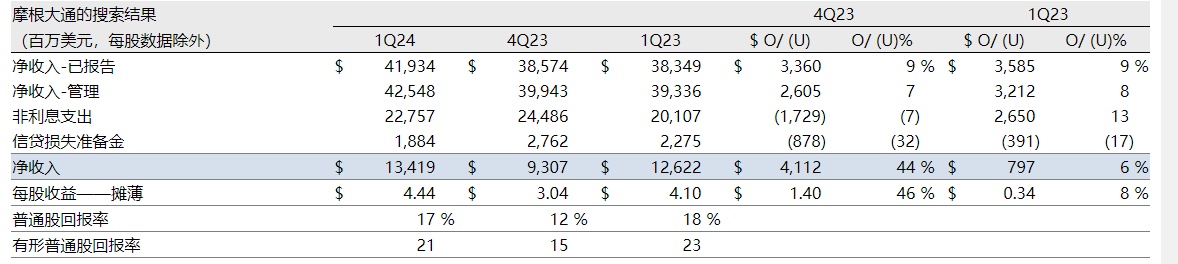 1. From the specific data, JPMorgan Chase's performance growth in Q1 was quite significant, with revenue growth far exceeding expectations, and profit growth was also very notable. The trend in net interest income growth remains solid.