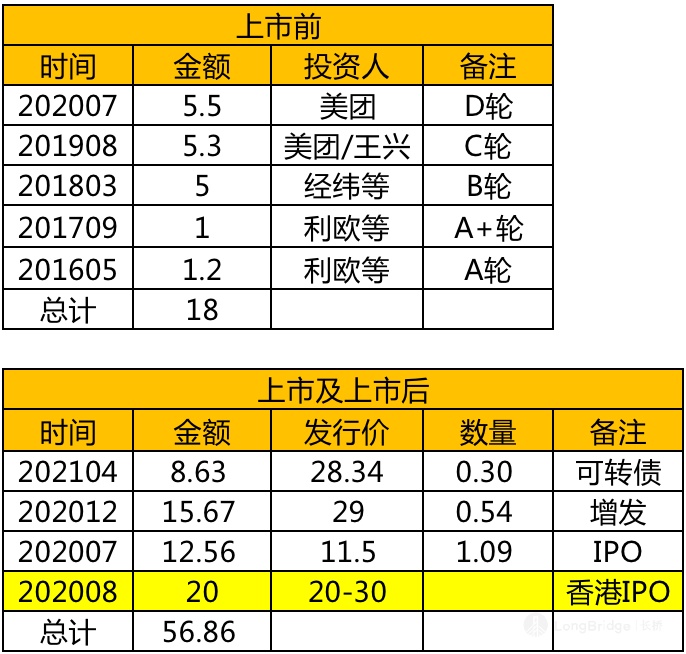 注 2:黄色部分为香港 ipo 预估数据。不算香港 ipo 融资,ipo,FPO,可转债三次融资总额 36.86 亿美金,如果算上 8 月份香港上市预估的融资额,上市及上市后融资总额差不多在 57 亿美金(370 亿人民币左右)。