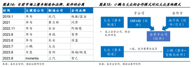 (2)整车制造和软件的分离:今年 7 月,大众公告拟用小鹏的智能车技术,在中国推出多款纯电动车型。智能化与电动化天然耦合的优势叠加软件端高研发壁垒,技术领先的新势力车企有望实现智能化技术输出,而传统车厂在自主转型受阻的情况下,可通过合资合作引入智能化架构,实现智能化层面的快速追赶。