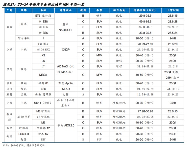 本文观点主要来自国金证券研报《城市 NOA 迎爆发:技术趋势、商业模式和竞争格局解析——智能汽车专题》,作者: