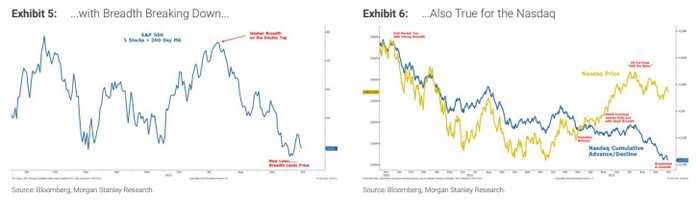 标普 500 指数和纳斯达克综合指数的涨幅也有所下降,而低于 200 日移动均线的股票比例继续恶化。