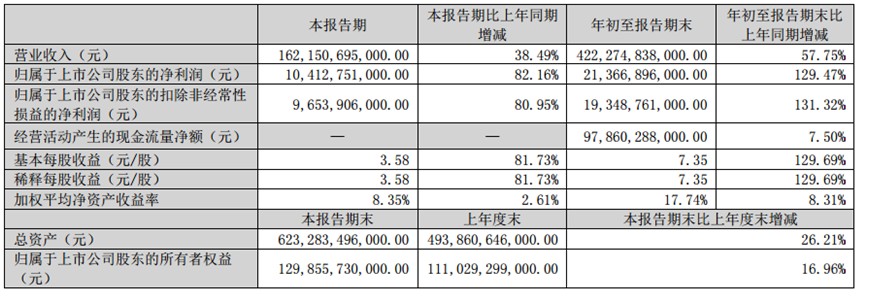 10 月 30 日晚上,新能源汽车巨头比亚迪公布了今年三季度的业绩。今年第三季度,比亚迪实现了营业收入 1621.51 亿元,同比增长 38.49%,环比增长 15.86%;归母净利润为 104.13 亿元,同比增长 82.16%,环比增长 52.59%;毛利率为 22.12%,继续超越老对手特斯拉(17.9%),同比增长 3.16 个百分点,环比增长 3.4 个百分点。