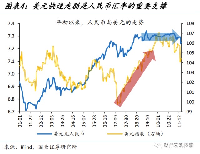 国金证券认为,美元的快速走弱是人民币汇率升值的直接推手。美元指数自 10 月下旬以来大幅回落,正在逼近 100 大关。