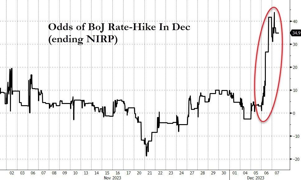 这些观点表明当局正在考虑结束负利率,进一步强化了市场加息预期,市场预计日本央行本月结束负利率的概率从 2% 飙升至 45%,许多人士预计日本央行将在明年逐步退出超宽松政策,部分市场人士押注日本央行将在 1 月份采取行动。而日元的反应是可以预见的,日元对其他主要货币已经走强,周四日元继续大涨。