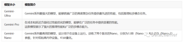 Gemini 模型是一个系列模型,包含三个不同参数规模的 4 个模型。