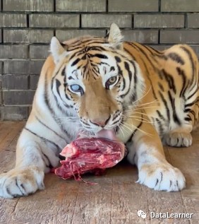 最终谷歌的 Gemini 准确输出了一个在吃东西的老虎。