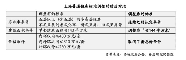 其中,上海对普通住宅的认定标准进行了优化,剔除了价格标准,同时提高了建筑面积标准,从 140 平方米提高至 144 平方米。