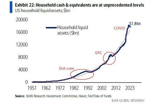 值得注意的是,美银数据显示,私人部门的现金储备在 2018 年占商业和工业贷款需求的 10%,截至目前,该比例已经升至 17%,为有记录以来最高水平。