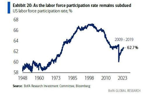 Woodard 认为,未来工资不太可能下降,因为劳动力参与率仍远低于过去十年的平均水平,甚至还没有达到新冠疫情爆发前的水平。