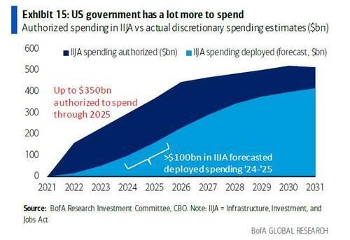 美银估计,如果立法没有出现变化,考虑到已通过的立法授权拨款规模巨大,未来十年政府的实际支出还会持续增加。