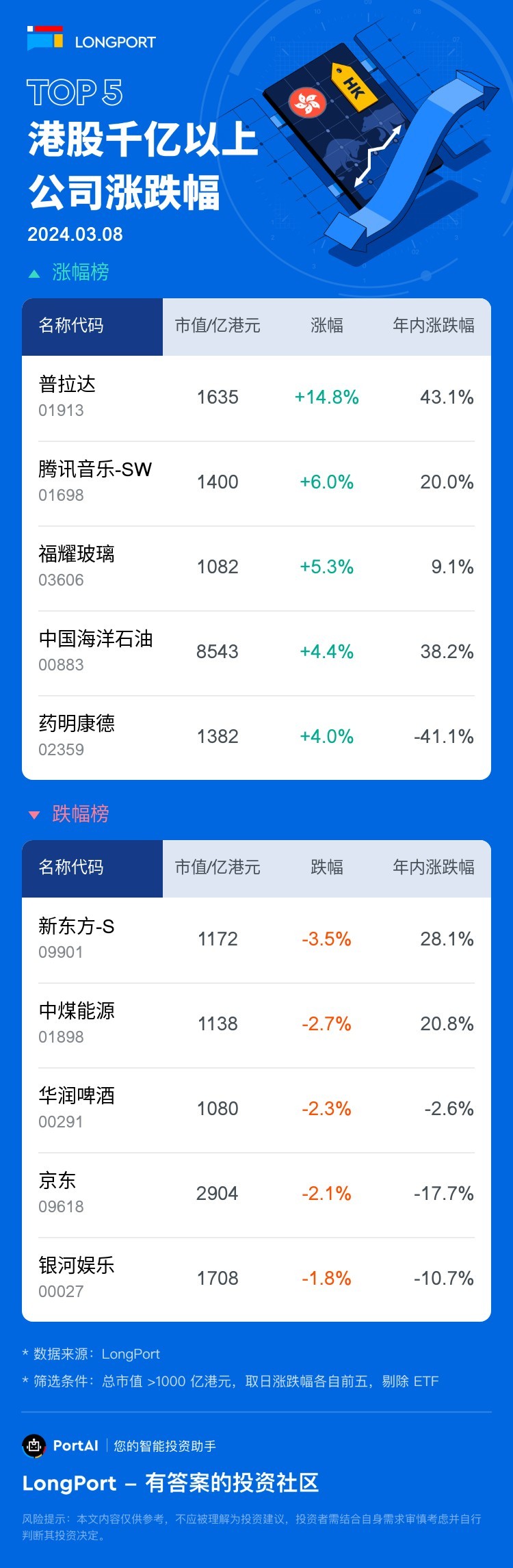 Top 5 HK Stock Gainers/Losers (>100B) (3.8)