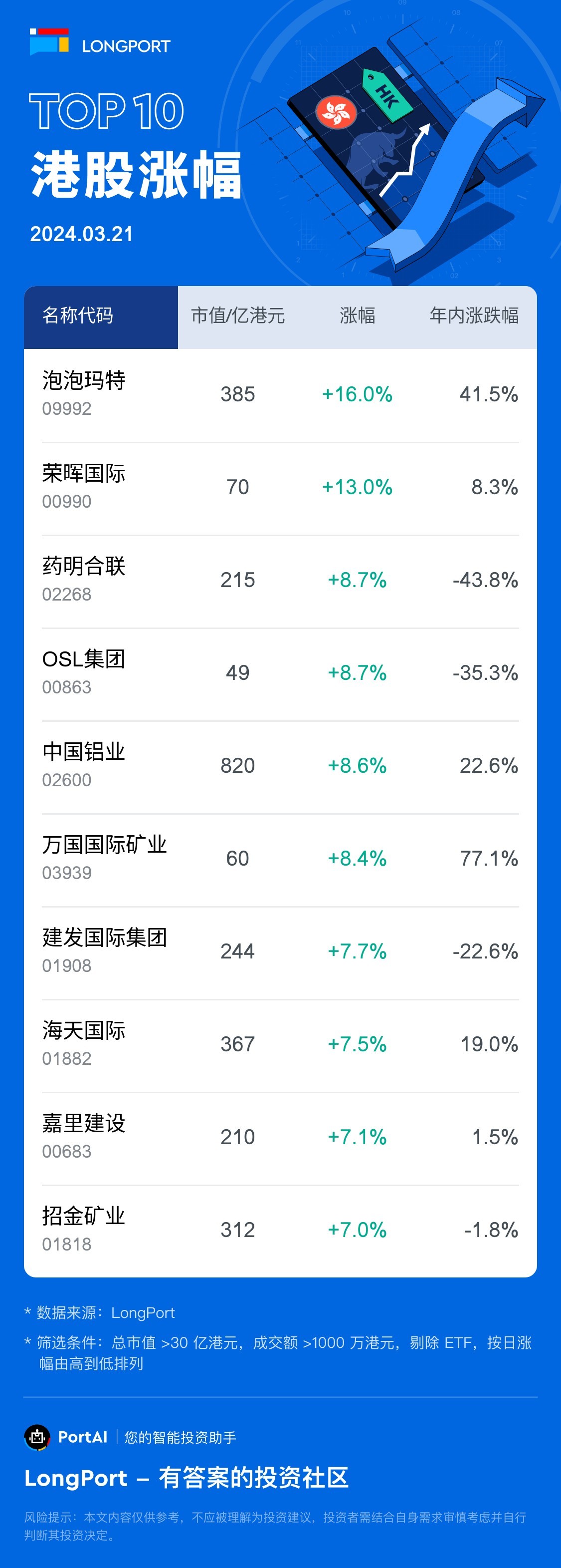Top 10 HK Stock Gainers (3.21)