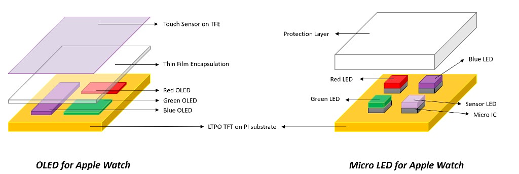 当苹果多年前制定 microLED 计划时,将其视为取代有机 LED 屏幕或 OLED 的技术。苹果预期最终将 microLED 推广至其所有产品,从 Apple Watch 到 iPhone 到 Mac。