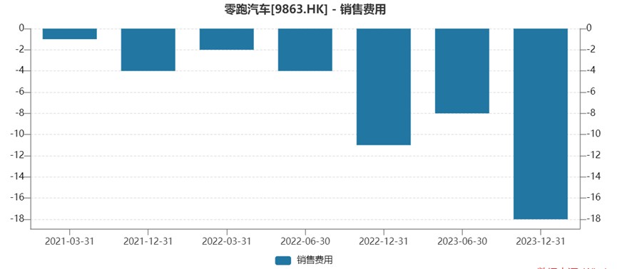 零跑汽车销售费用的增长也没有停下脚步,零跑汽车在 2023 年第四季度的销售开支为 17.95 亿元,同比增长 61.2%。