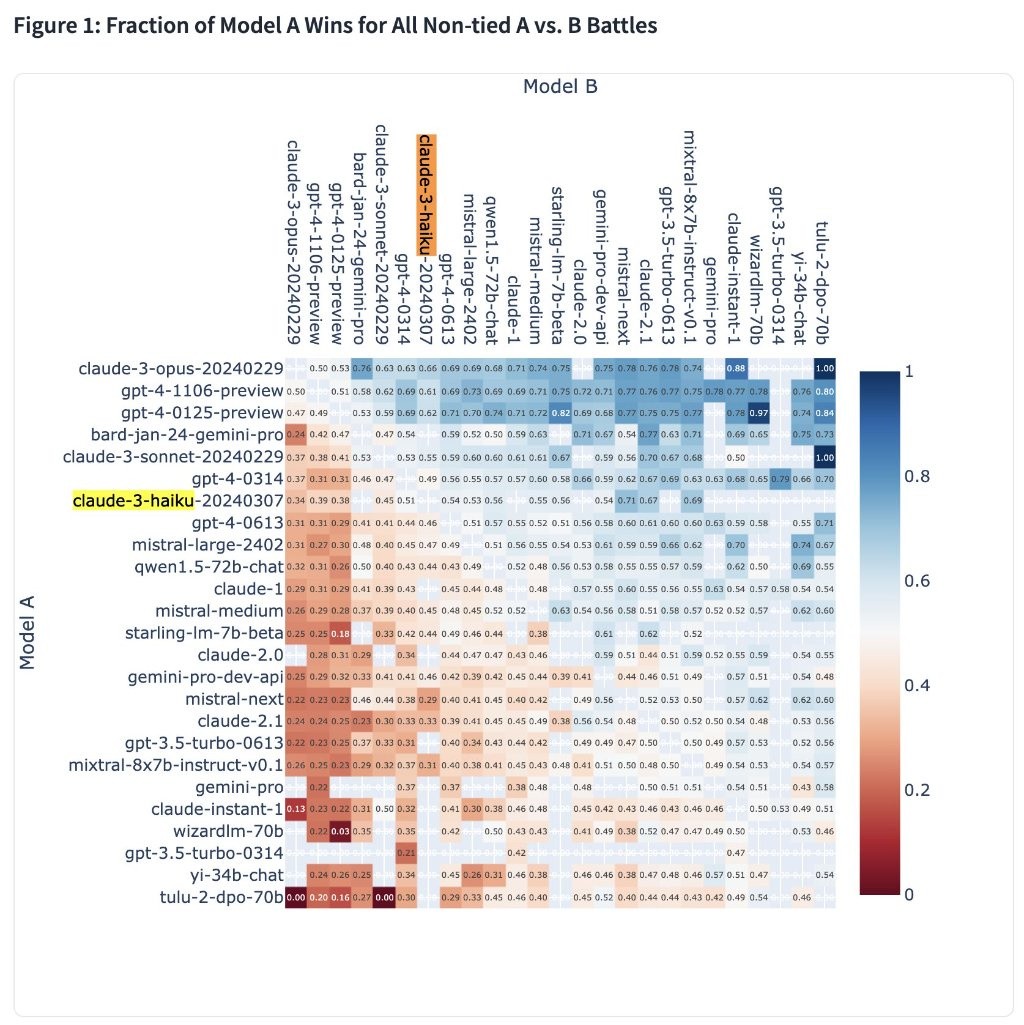 “Haiku 给所有人留下了深刻的印象,根据我们的用户偏好,Claude 3 Haiku 已经达到了 GPT-4 级别!” 运行 Chatbot Arena 的 LMSYS 平台发帖大赞,“它的速度、功能和上下文长度目前在市场上是独一份的。”