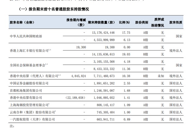 截至 2023 年末,根据交行股东名册,汇丰银行持有交行 A 股 19300 股、H 股 138.86 亿股。