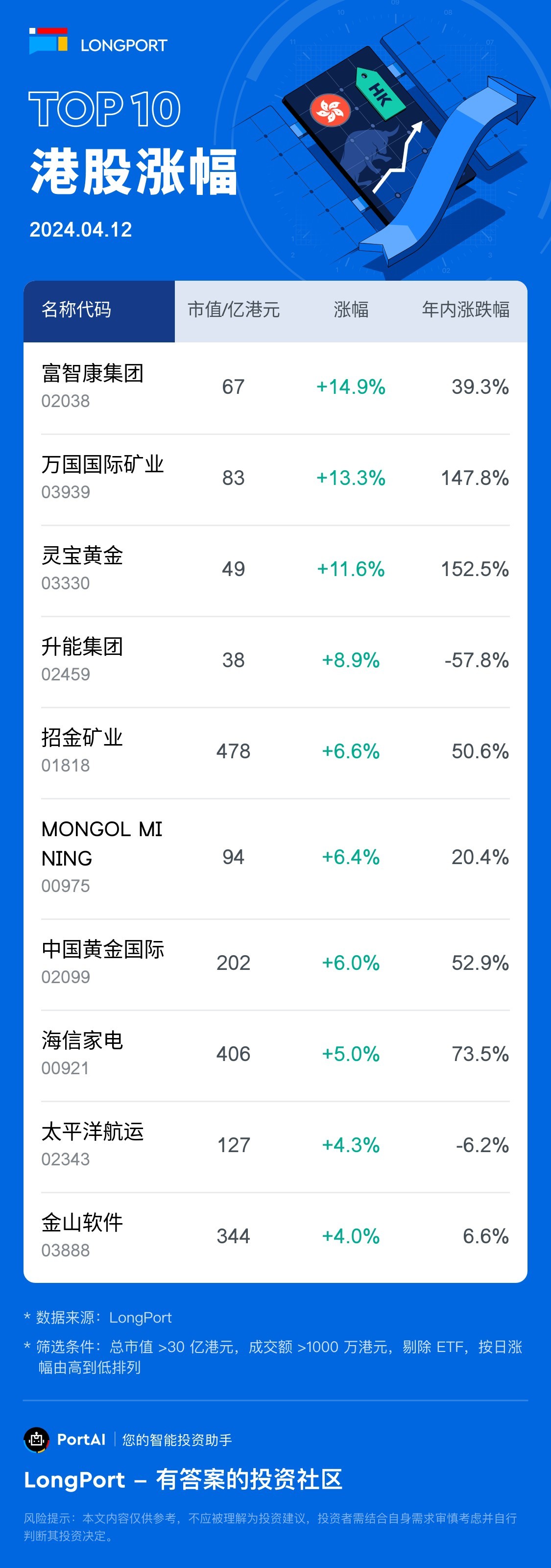 Top 10 HK Stock Gainers (4.12)