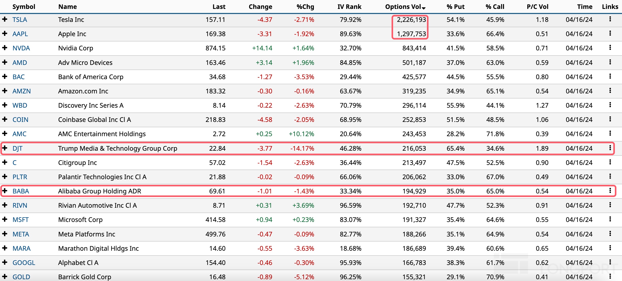 US Stock Options | Tesla, Apple lead the way, Coin, AMC, DJT all see a surge in trading volume!