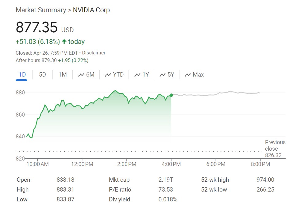 本周的满血复活,意味着英伟达几乎抹去了上周的所有跌幅,仅用 5 个交易日,就从近期低点大反弹了 17%。英伟达股价收于 877 美元,创下 4 月 12 日以来最高。