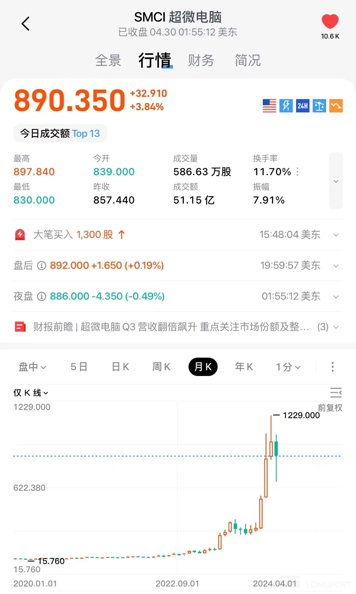 最牛 AI 股超微電腦(SMCI)將於 4 月 30 日盤後公佈第三季度業績。