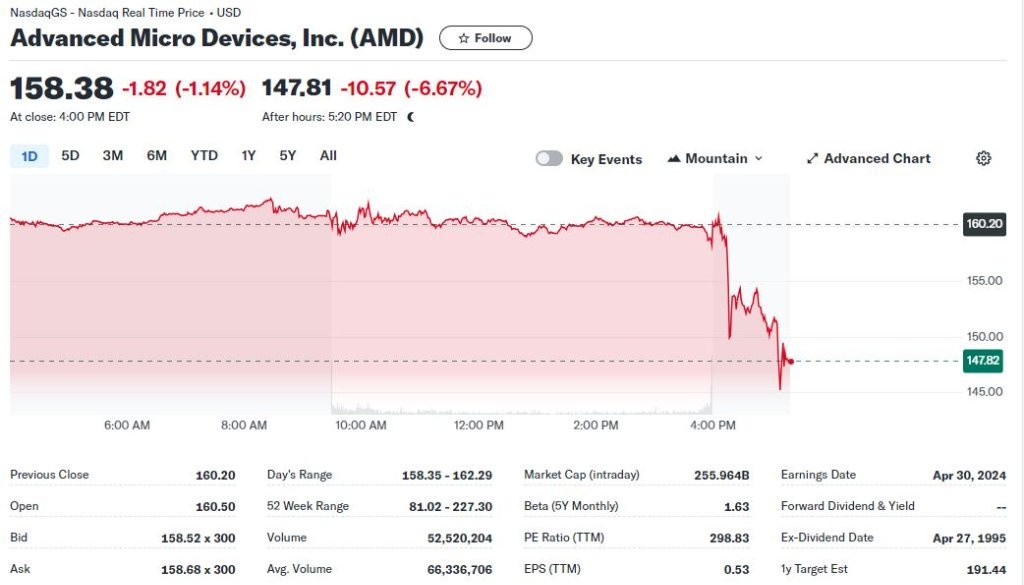AMD's first-quarter report and guidance are not bad, but the sales outlook for AI chips does not meet the market's high expectations, leading to a 9% drop after hours | Financial Report Insights