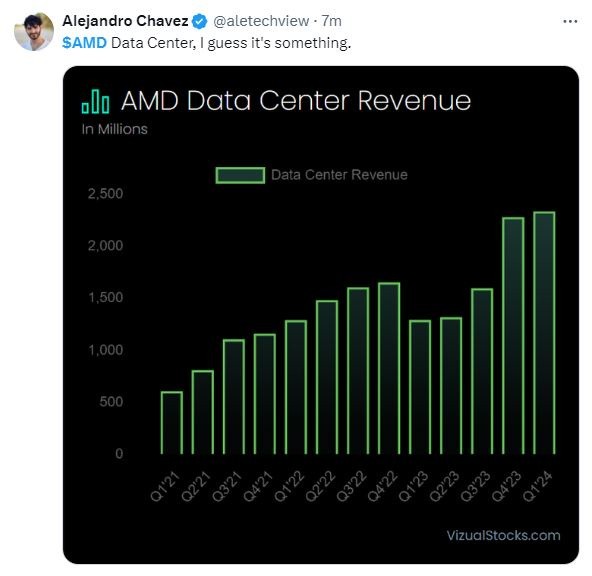 有分析称,去年四季度和今年一季度的 AMD 数据中心收入增长得 “相当可观”。