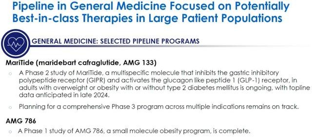更为业界所关注的是 GLP-1 管线的进展,AMG 133 二期临床数据以及今年底前读出,正在筹备三期临床。后续的小分子减肥药 AMG 786 一期临床已经完成。