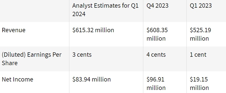 投资者将关注 Palantir 商业部门的持续增长。由于对其人工智能平台的商业需求激增,该公司公布的 2023 年最后一个季度的收益好于预期。2023 年全年,商业收入约占 Palantir 总收入的 45%,其余部分由政府业务收入所贡献。今年 3 月,Palantir 宣布与美国陆军签订了一份价值 1.784 亿美元的合同。