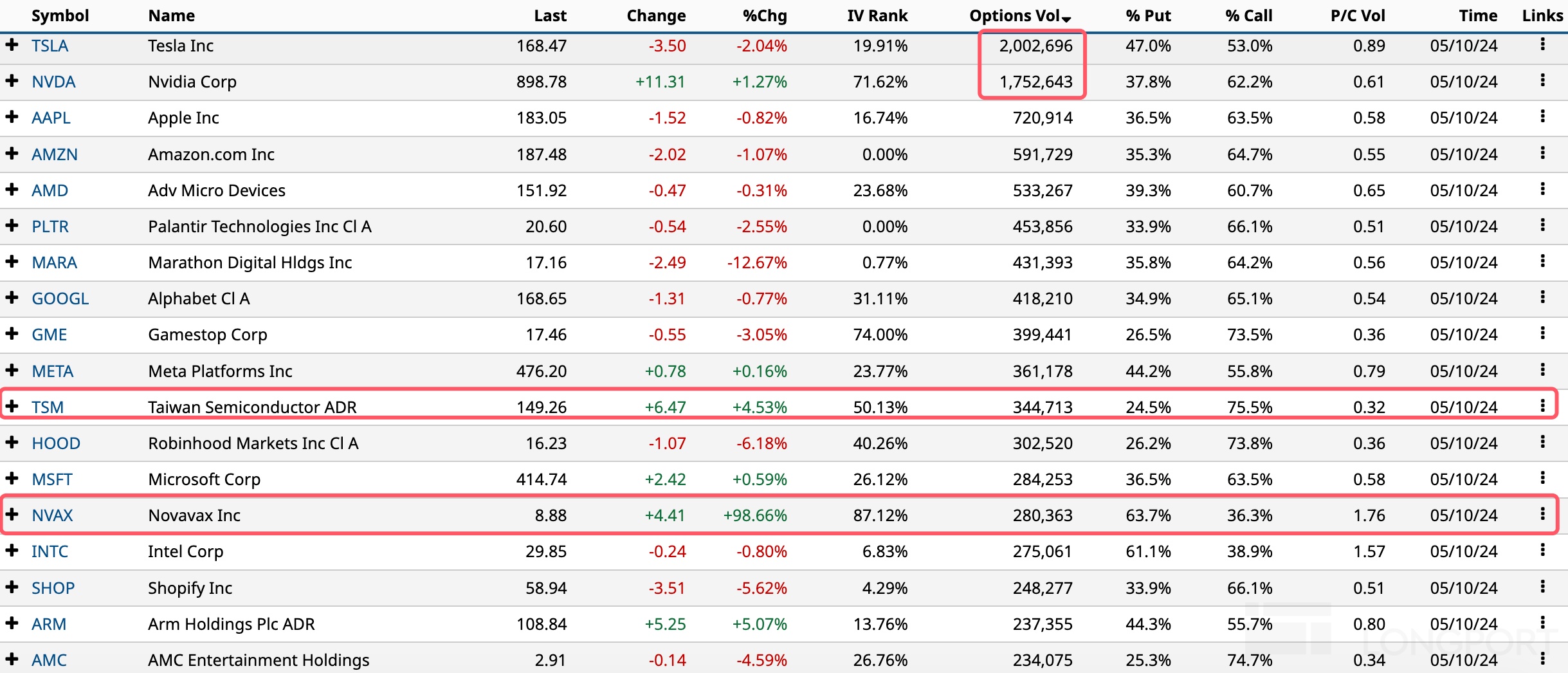 上周五最火合约:当日到期、执行价 170 美元的特斯拉 put 成交 18 万张。游戏驿站 GME 期权成交接近翻倍至 40 万张,看涨期权占比 73.5%。诺瓦瓦克斯医药股价接近翻倍,期权成交大涨至 28 万张,看跌期权占比 63.7%。