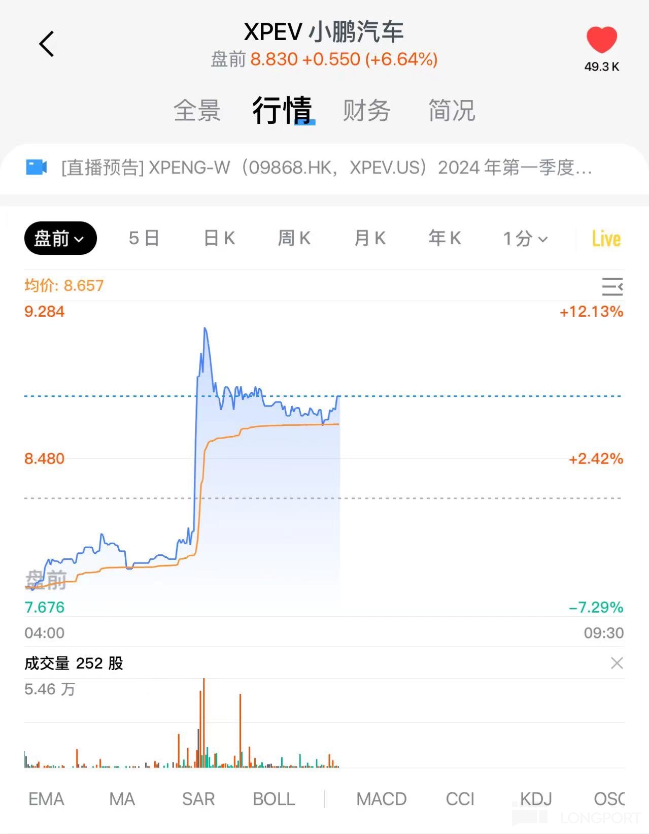 小鹏汽车 (XPEV) 美股盘前一度大涨 10%: