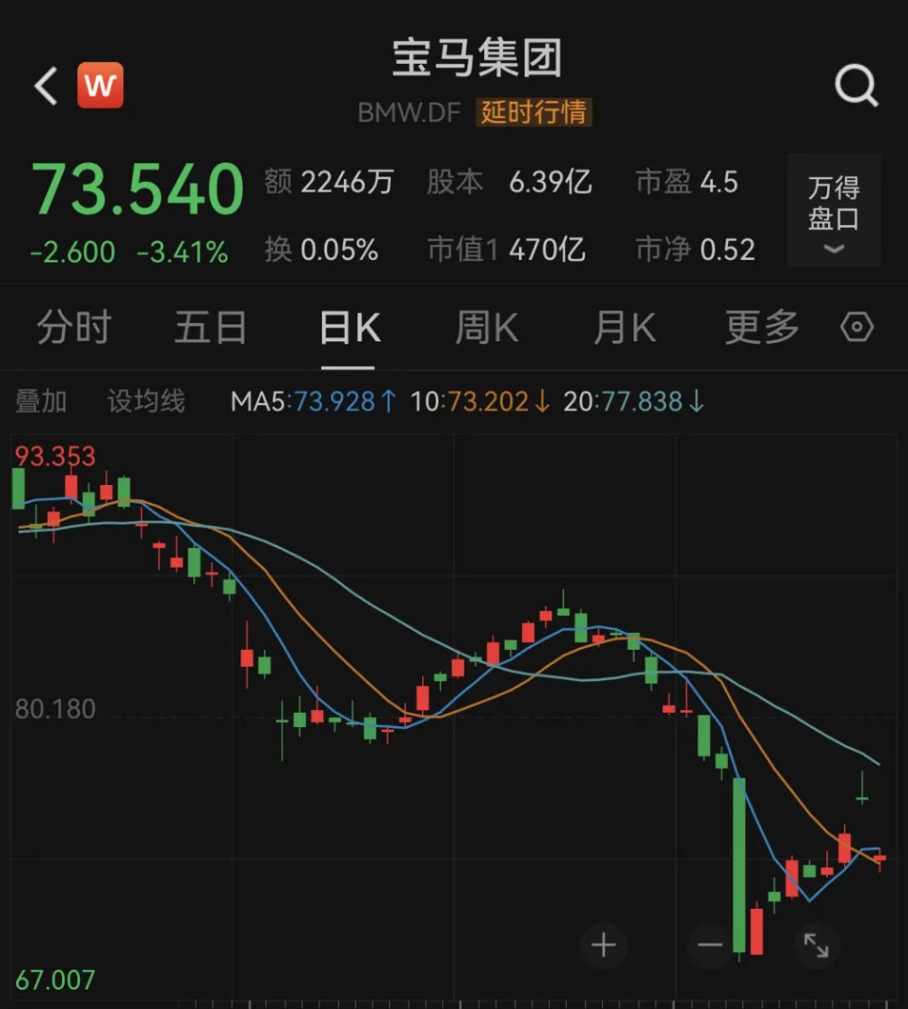 今日,宝马集团股价也跟奔驰随低开低走,跌逾 4%。大众汽车、保时捷等欧洲汽车业巨头股价今日均低开低走。