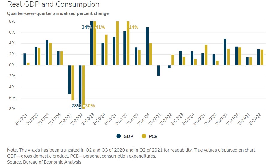 他指出,在截至 7 月的三个月,核心 PCE(不包括波动性较大的食品和能源成本)通胀以年化 1.7% 的速度上升,远低于美联储 2% 的通胀目标。此外,不包括住房的核心服务价格——美国通胀顽固的元凶之一——也在降温。