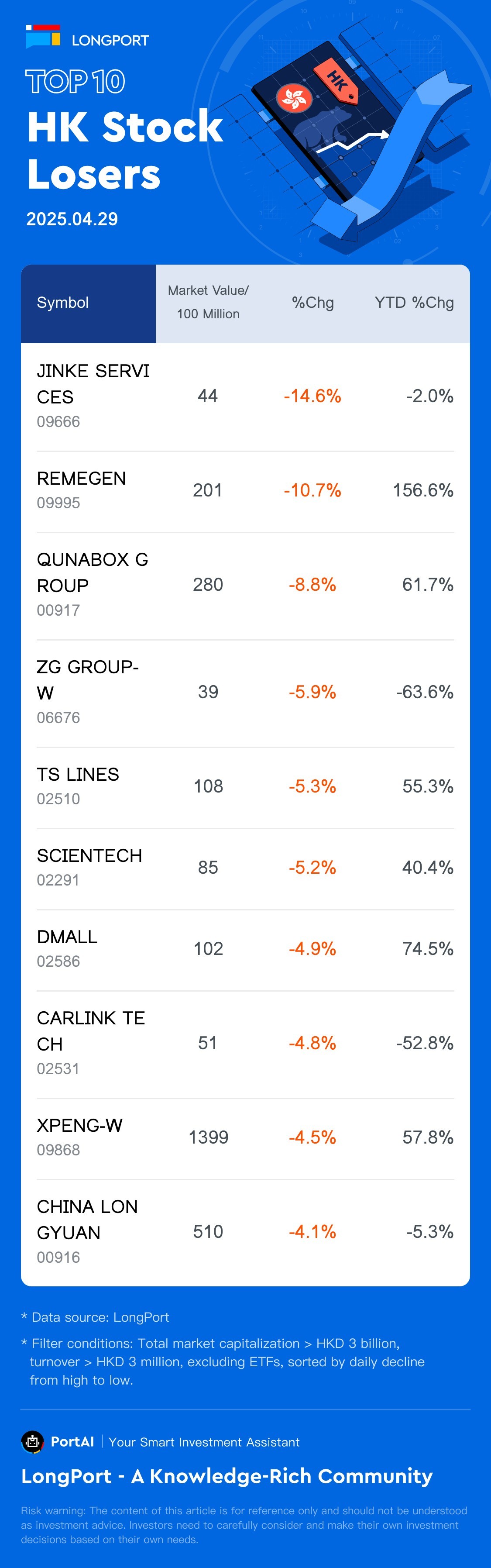 Top 10 HK Stock Losers (4.29)
