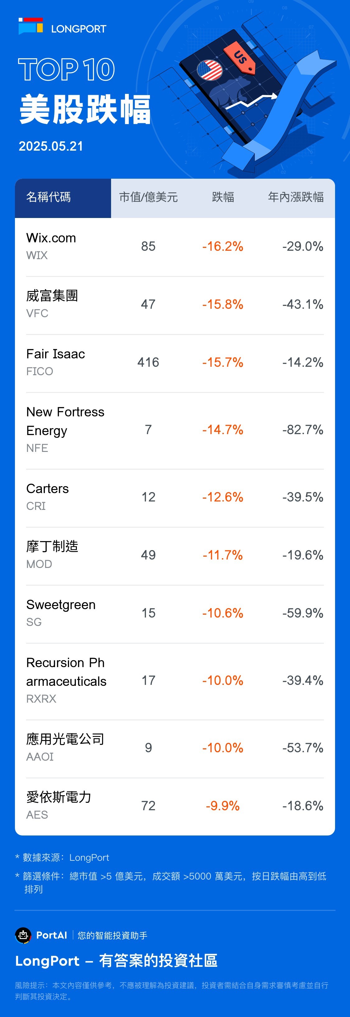 Top 10 US Stock Losers (5.21)