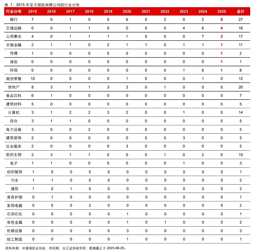 This year, insurance capital's stake increases have continued the hot momentum from last year, and in terms of sector and industry characteristics, the number of stake increases in Hong Kong stocks and banks is greater than in previous periods. As of June 20, 2025, there have been a total of 19 stake increases by insurance companies in 2025, involving 16 companies, of which 13 are Hong Kong stocks; in terms of industry distribution, among the 19 stake increases this year, 9 were in bank stocks, including 7 in Hong Kong bank stocks.