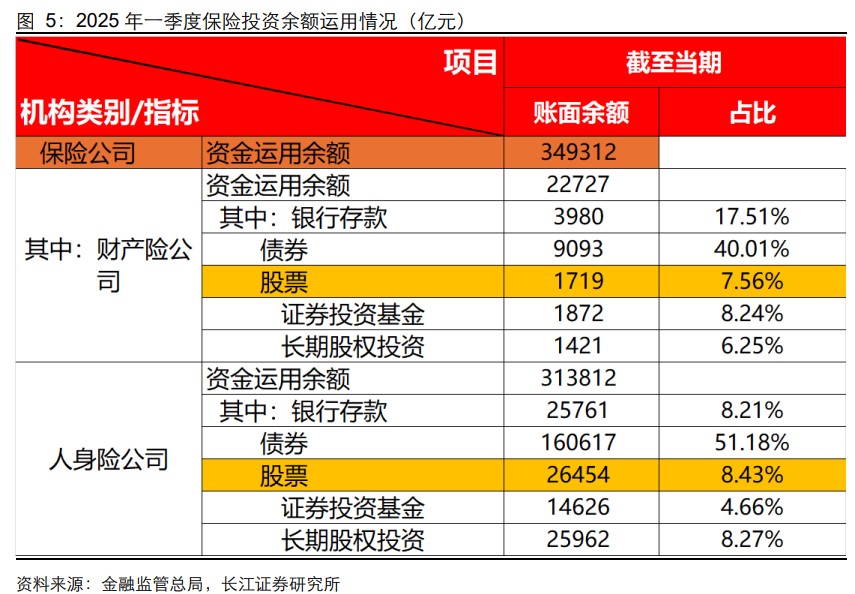 According to the first quarter data of the insurance investment balance in 2025, the total market value of stocks held by insurance companies is approximately 2.8 trillion yuan, the market value of the aforementioned 7 individual stocks accounts for about 20% of the stock holdings of insurance companies, indicating a relatively high concentration.