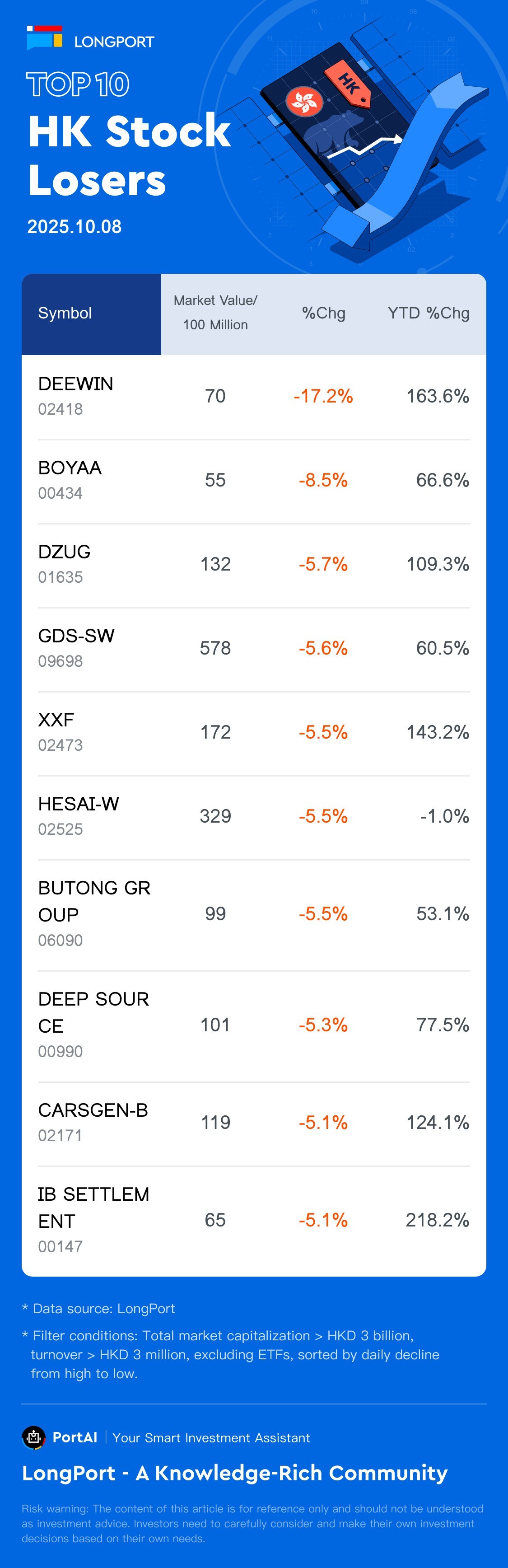 DEEWIN(02418) fell 17.22%, with a trading turnover 4.2 Million HKD, and a year-to-date rose 163.6%. BOYAA(00434) fell 8.48%, with a trading turnover 114.0 Million HKD, and a year-to-date rose 66.6%. DZUG(01635) fell 5.71%, with a trading turnover 92.3 Million HKD, and a year-to-date rose 109.3%.