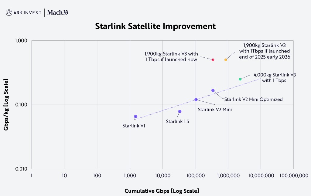 因此,以 Gbps/千克衡量的卫星性能成为模型中最敏感的输入变量,影响收入生成和资本支出。卫星性能对带宽部署的效率和成本至关重要,也是决定 SpaceX 完成星链星座建设速度以及将资本重点转向火星目标的关键。