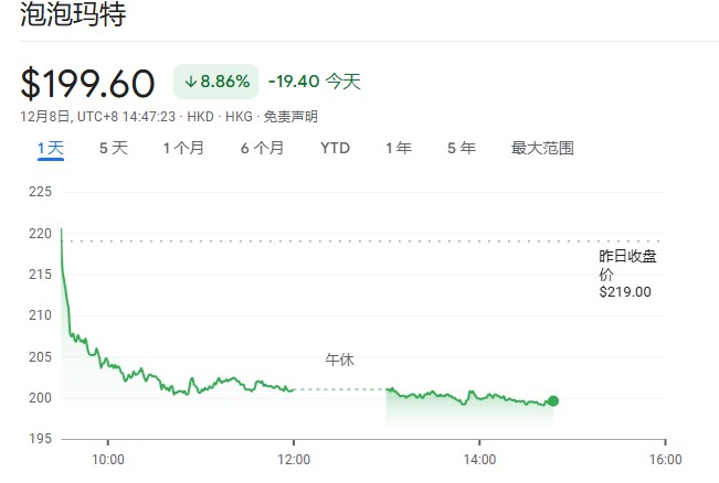 On Monday, POP MART's Hong Kong stock price plummeted by as much as 9% during trading, marking the largest drop in over a month, and has cumulatively retreated about 40% from its August peak. Market concerns that its sales during the U.S. "Black Friday" promotion may not meet expectations have dampened investor confidence.