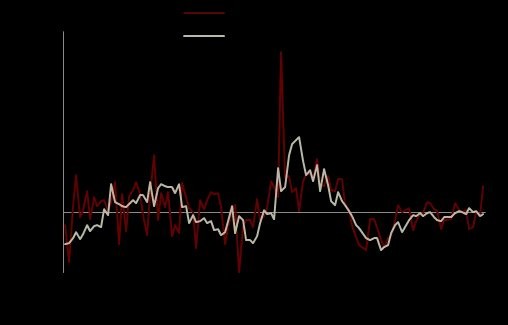 图表 7:对主要地区出口和进口的同比增速(单位:%)