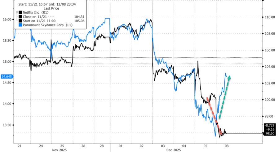 As a result, the predicted probability of a deal between Netflix and Warner Bros. on the prediction market Polymarket has dropped from about 20% to 16%.