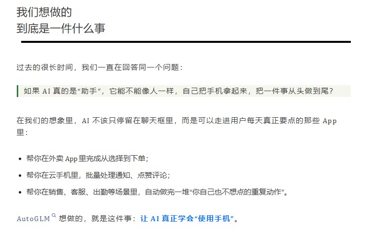 “这件事只在一家公司做,是不够的。AutoGLM 开源的第一层初衷,是把这一层能力变成整个行业可以共同拥有、共同打磨的公共底座。”