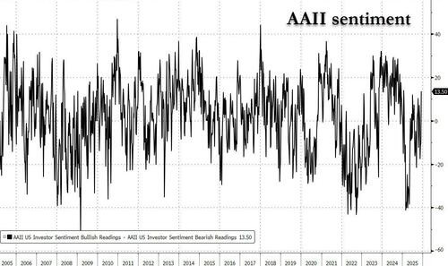 CNN 恐慌与贪婪指数从一周前的 18 升至 40,为 10 月底以来最高水平。高盛情绪指标从此前几个月的负值区间回升至中性区域,最新读数为 +0.1。