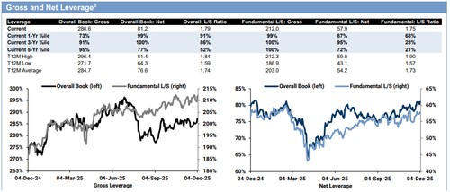 End-of-2025 sprint! Hedge fund net leverage soars to a high of 99%, aggressively increasing positions in global stock markets for 7 consecutive weeks, with U.S. stocks taking the majority