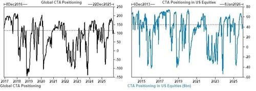 距离 2025 年结束仅剩 16 个交易日,对冲基金连续第七周净买入全球股票,CTA 策略基金已从净卖方转为买方,高盛模型显示本周买入 90 亿美元全球股票,整体敞口升至 1100 亿美元。根据高盛 Prime Brokerage 数据,对冲基金总账面杠杆率上升 1.5% 至 286.6%;净杠杆率增加 0.4 个百分点至 81.2%,达到一年来 99 分位数水平。除亚洲新兴市场外,所有主要地区均被净买入,北美地区领涨。