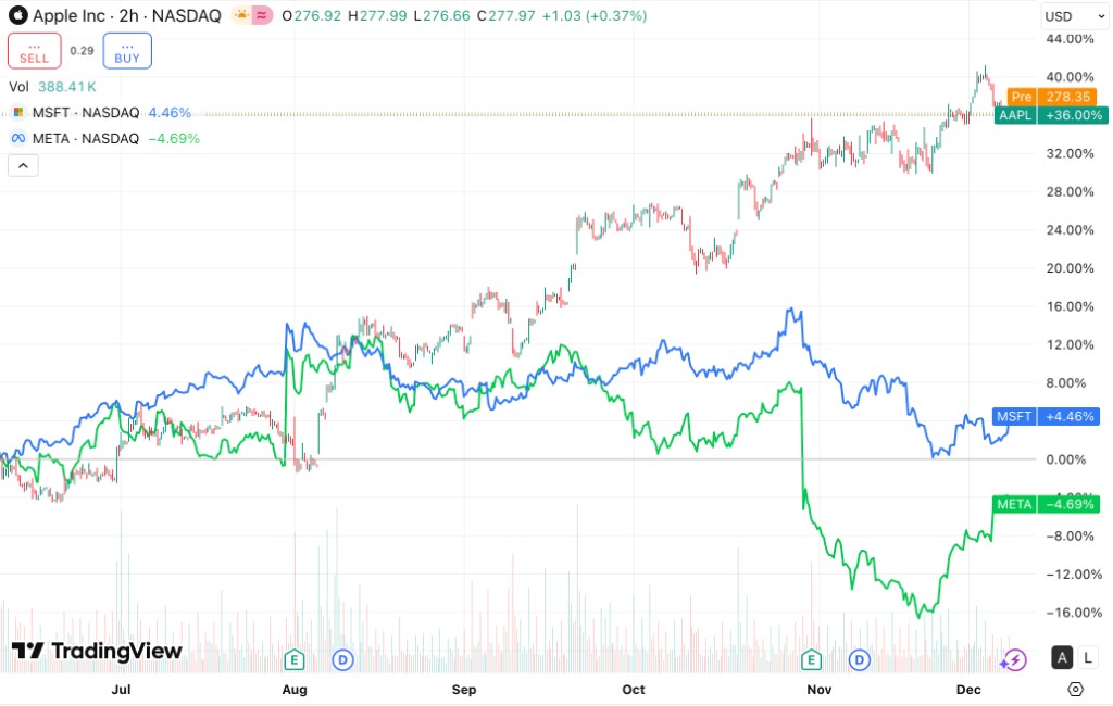 As the AI bubble faces skepticism, the slow-moving Apple unexpectedly "lies down to win": its stock price soared 35% in six months, outperforming Microsoft and Meta