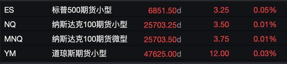 - 美股指期货集体小幅上扬,标普 500 期货涨 0.05%,纳斯达克 100 期货涨 0.01%,道琼斯期货涨 0.03%