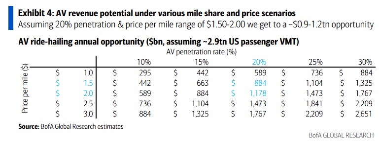 Bank of America Autonomous Driving Deep Report: The scale of driverless ride-hailing could reach trillions, with a cost of $2 per mile being the tipping point