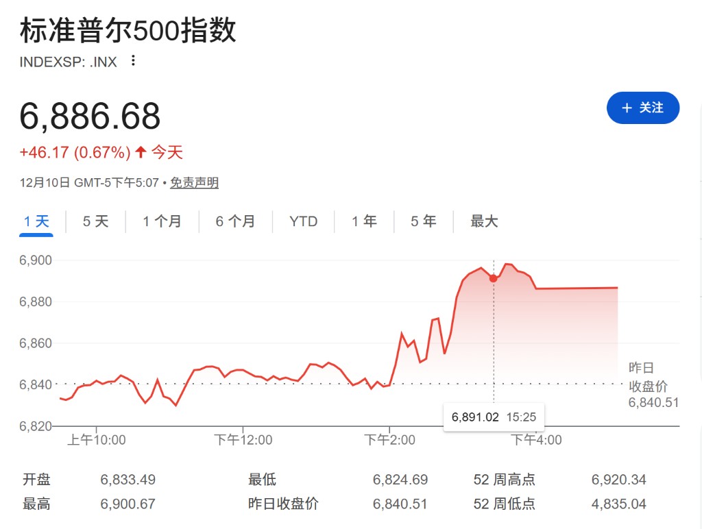 此外,美联储宣布将从 12 月 12 日开始购买短期国债以维持充裕的储备金水平,这一技术性调整也支撑了市场情绪。