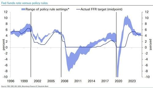 尽管市场预期降息,但德意志银行警告,如果 2026 年通胀持续高于目标,且根据政策规则利率处于低位,美联储可能不仅停止降息,甚至被迫转向加息。